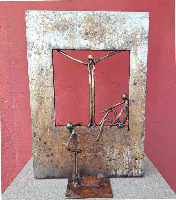 Stahlbildhauer Heinrich Keller stammt aus Alsdorf und lebt in Aldenhoven. Seit mehr als 30 Jahren setzt er sich mit der künstlerischen Bearbeitung von Stahl auseinander und wendet dabei u.a. die archaisch anmutende Technik des klassischen Brennschneidens an, wovon die bisweilen schroffen Konturen seiner Arbeiten zeugen.