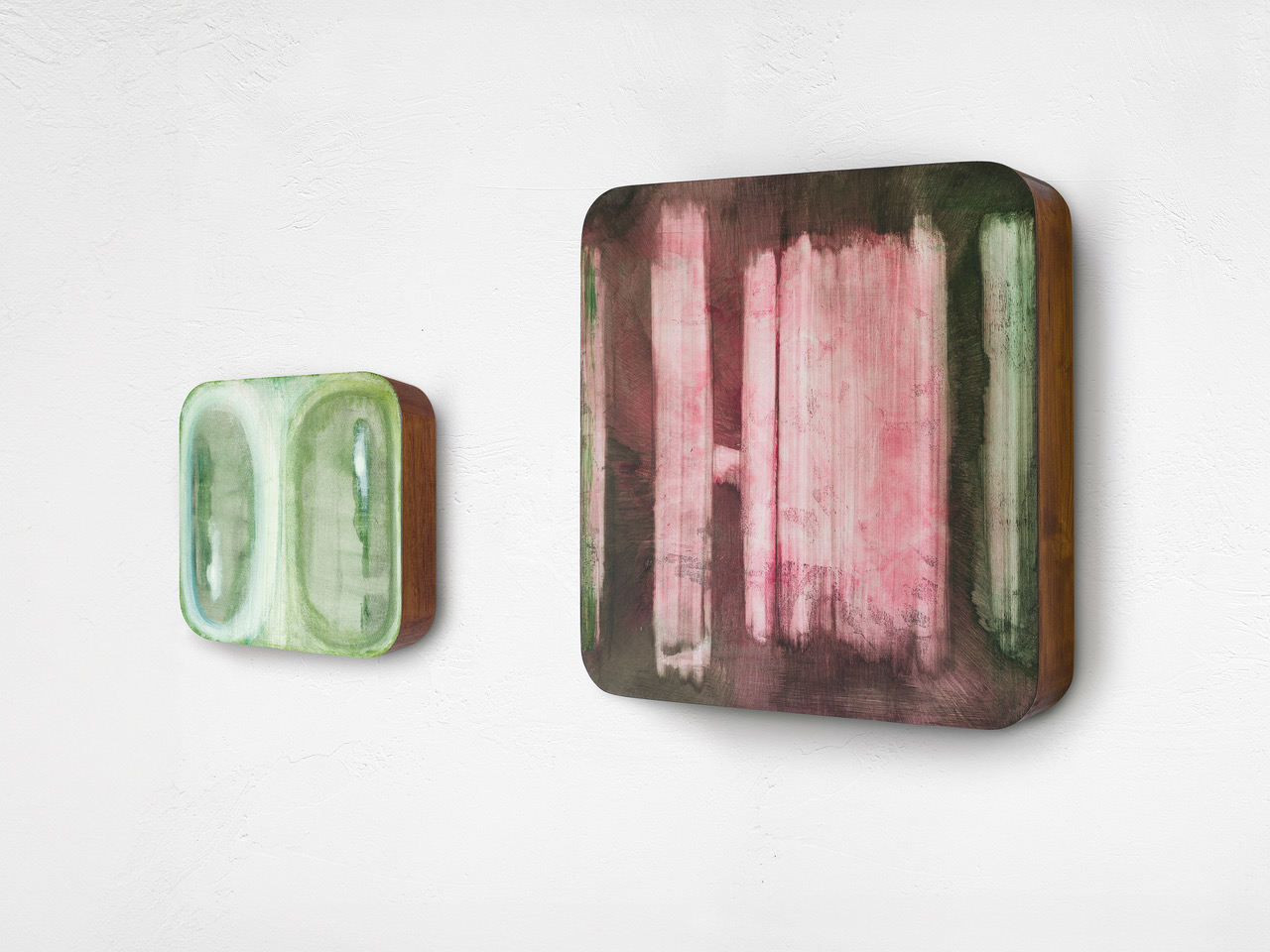 In ihren aktuellen Papierarbeiten der Werkgruppe „extracts“ und den Holzkörpern „extracts on wood“ jedoch, werden Elemente, kleine Ausschnitte, Strukturen oder auch Inhaltliches aus ihren vorherigen Bildern verarbeitet. In spontaner Improvisation entstehen daraus Arbeiten, die in gestische /lyrische Abstraktion steuern – eine Spurensuche, die kaum bis keinen Verweis mehr auf die ursprüngliche Quelle gibt.