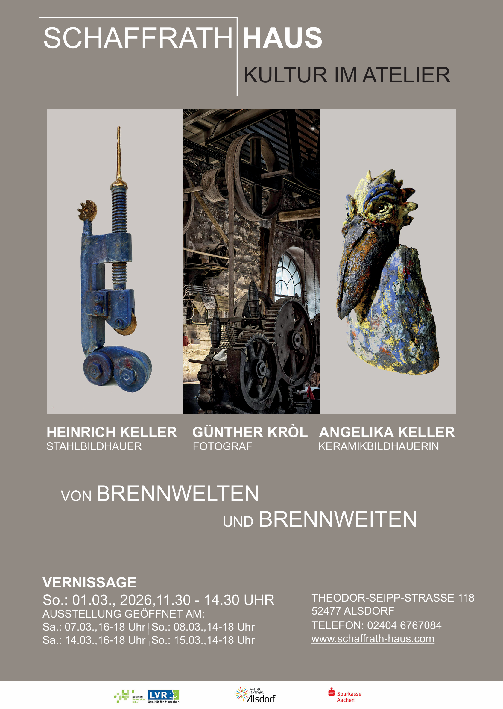 Brennwelten und Brennweiten werden hier zu einem übergreifenden Prinzip: In den Arbeiten aller drei Positionen wird durch Energie, Formgebung und Blickentscheidung Material gestaltet und Wahrnehmung bewusst gelenkt.